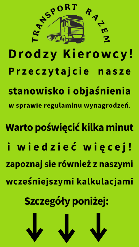 Zdajemy sobie sprawę z uwarunkowań finansowych oraz wysoce konkurencyjnej sytuacji na rynku drogowych przewozów międzynarodowych, co ma znaczący wpływ na wysokośc stawek i dalej przekłada się na możliwości finansowania wzrostu wynagrodzeń.